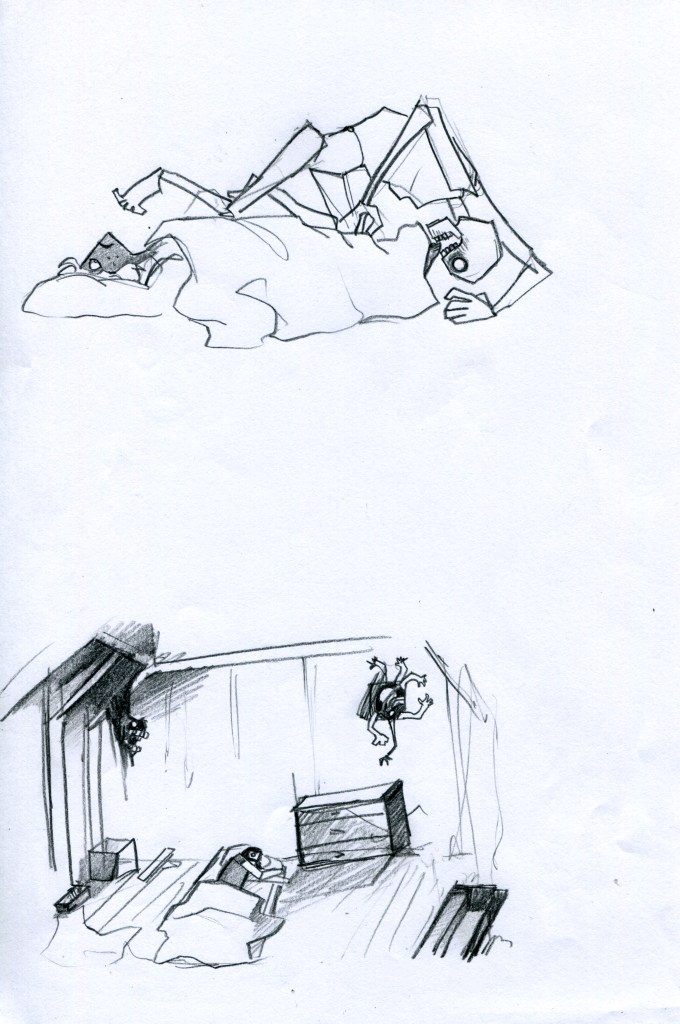 Das Spiel war ein Point & Click Adventure und komplett mit Bleistift gezeichnet. Inspiration waren Schlafparalysen, an denen ich selber oft leide, welche im Spiel als gemorphte Alltagsobjekte, etc. zum Vorschein kommen, und die Spielfigur bedrohen. Durch Nutzen der Umgebung mussten die entstandenen Kreaturen aufgehalten werden, um zu überleben.
